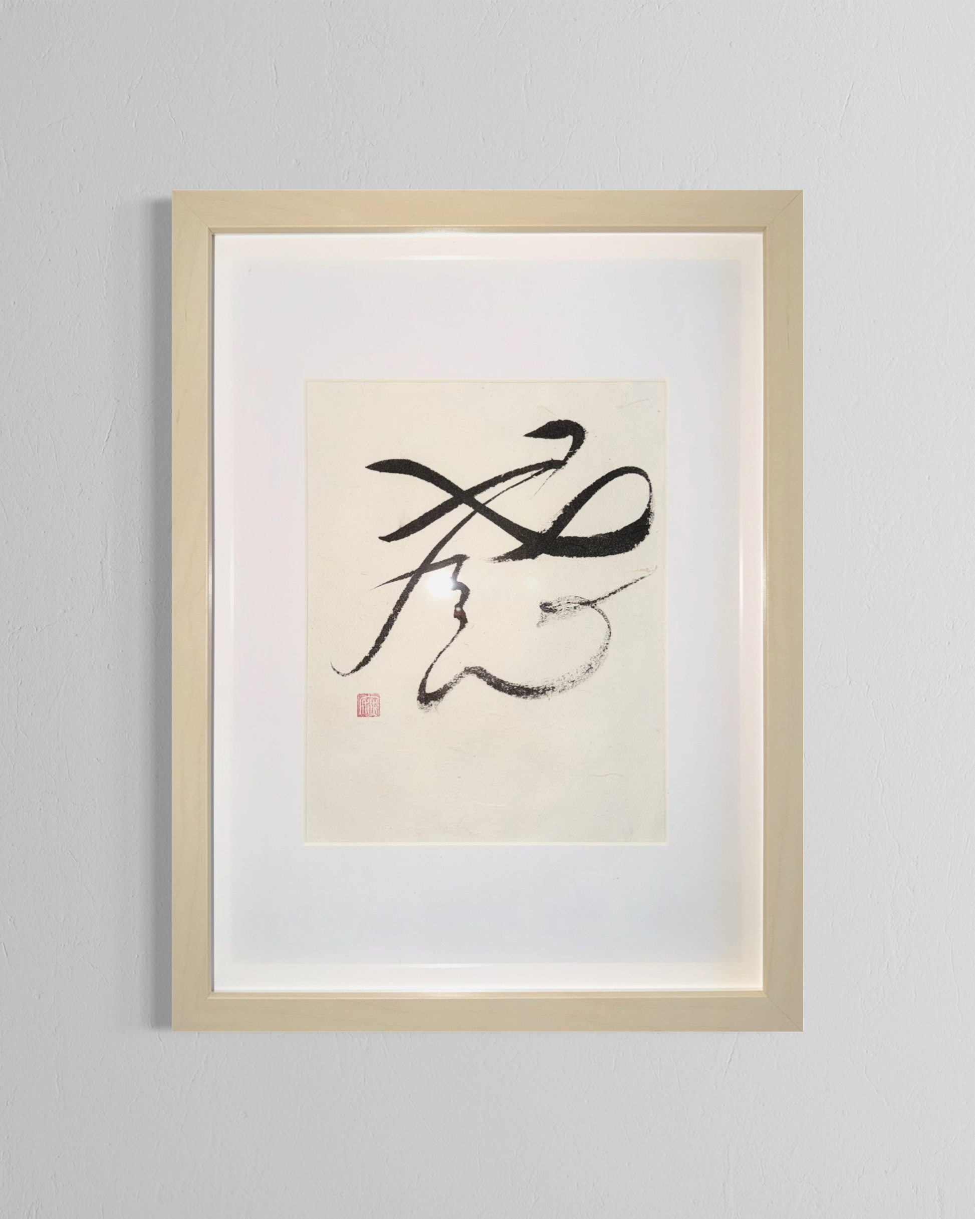 A hand-crafted calligraphy piece brings quiet presence and balance into your space.